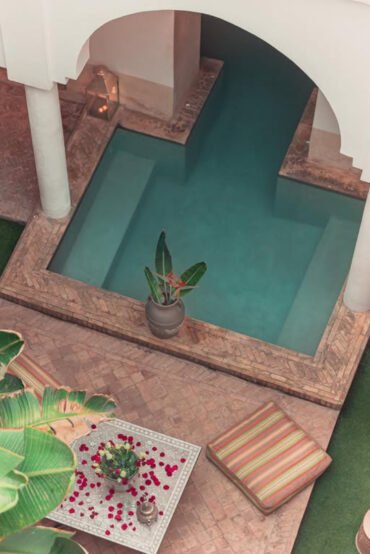 A calming open-air space to relax and enjoy the riad’s atmosphere.